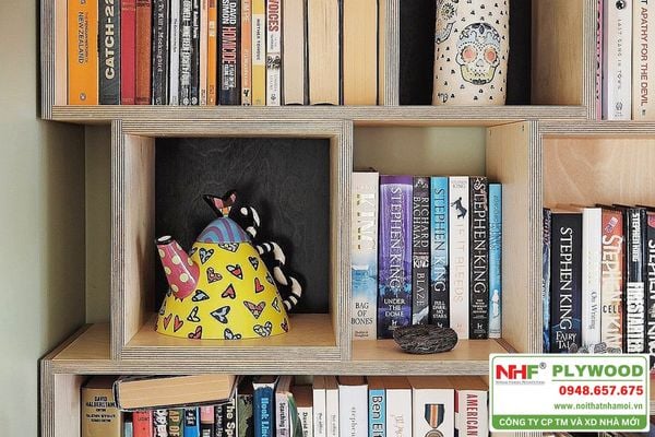 - Kệ để vật nặng như đồ sứ, máy xay, nồi niêu thì nên dùng plywood từ 18mm – 20mm.
