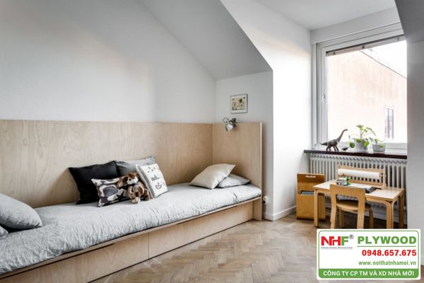 Giường ngủ trẻ em plywood phủ melamine vân gỗ